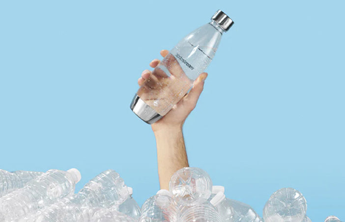 En enda kolsyrecylinder ger cirka 60 liter bubbelvatten. Vi vill också se det som att det dessutom förhindrar att 60 enliters engångsplastflaskor att hamna i vår miljö. Multiplicera det med miljontals SodaStream-bubblare världen över så har vi en rörelse – en verklig, påtaglig förändring för att hjälpa miljön – helt enkelt genom att bubbla vårt vatten hemma.