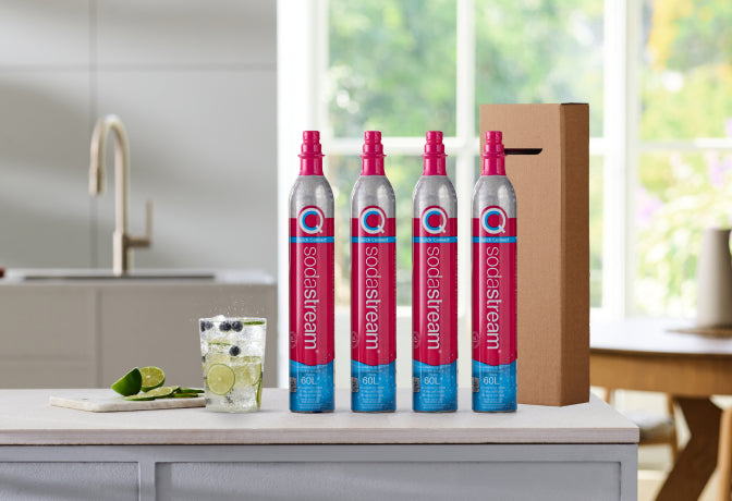 Beställ ett 4-pack av den kolsyrecylindertyp som du behöver till din Sodastream