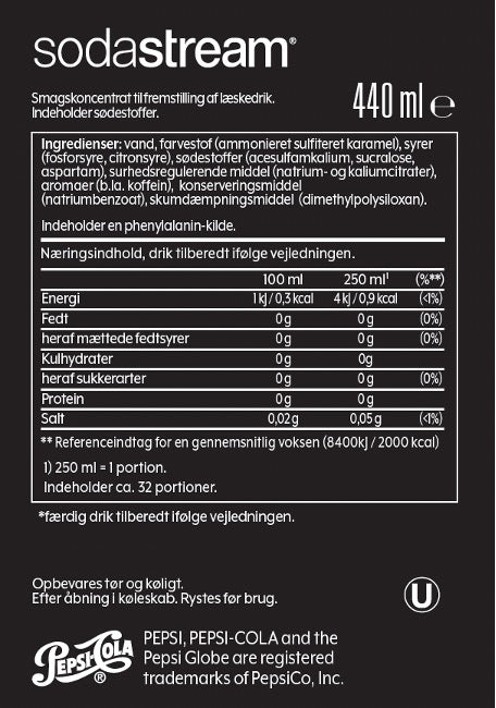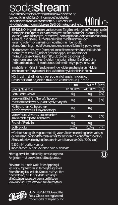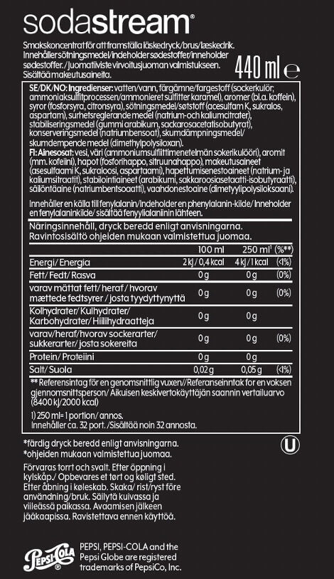 Smakkoncentrat för att framställa kolsyrad sockerfri dryck med colasmak. Ger upp till 9 L färdig dryck.