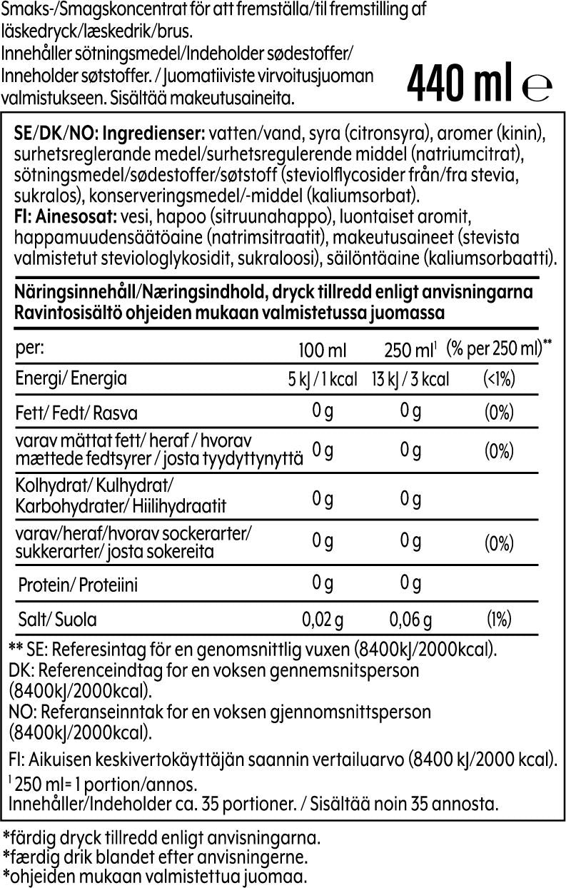 Flaskan innehåller 440 ml som ger ca 9 liter färdig dryck.